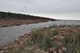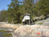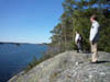 Mellanbalesviken-Värns. Kanonväder och vi upp som fjädrar, vi ville till naturreservatet. Vi gick först över på andra sidan, södra viken. Där finns det en fin sandstrand och därifrån gick det en led upp till udden och den mycket speciella sjö som finns där. Den är helt klar och man kan se gamla träskelett djupt därnere. Vi hittade pyttesmå grodor som inte riktigt hade omvandlats till grodor ännu, fina ! Vi fortsatte att vandra ända upp och ut på den över 100 meter höga klippan, mäktigt. Vi hade träffat två campare som tipsade oss om att vi skulle kunna skråa ner på vänstra sidan tillbaka ner igen. Det var en fin tur och en solig och varm dag, äntligen. När vi kom tillbaka till båten ringde M. sin handledare från universitetet, Sven-Olof och undrade om vi kunde hälsa på. Det kunde vi, så vi kastade loss på en gång och gick mot Värns. Vi ankrade i viken och Sven-Olof med son hämtade oss med roddbåt. Vi blev bjudna på middag utsökt potatissallad, fläskfilé och sallad. Bärkaka och kaffe till efterrätt. Vi fick ta del av Sven-Olofs auktionsfynd, ett gäng räkneapparater och en del andra märkvärdiga helande manicker. Vi vandrade tillbaka och passade på att visa vår "sommarstuga" oxå. Bilder från naturreservatet Balesudden.