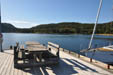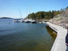 Klockestrand-Lövvik. Vi kom äntligen till båten, härligt ! Den här gången är det bara M+C. Vi städade, fifflade till och packade in massor med mat och grejor. Vi har inte "bott" in oss riktigt än. Vi bestämde oss för att gå norrut för att ansluta till Tommy och Christine som var i Ö-vik, så vi tog oss till Lövvik som första etapp. Vi bara smög oss in på insidan av bryggan och åt lite ost och kex. |