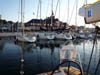 Stilla i hamn. Vi sa hej då till Bibbi och Stig, vi skyndade oss att mäta upp fler lådor och skåp för att fixa inredning och gliddukar.Vi åkte och köpte ny bäddmadrass till förpiken, typ tempur som följer kroppen. Vi mallade av samtliga kojer så att alla tre bäddmadrasserna blir färdiga till nästa gång vi kommer. Vi packade ihop våra prylar och åt på restaurangen i hamnen, kanonhamburgare ! Hej då båten ! |
