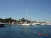 Utö-Ägnö, Napoleonviken. Innan vi kastade loss ville jag, Catharina, gå till bageriet och handla Utölimpa. I vanlig ordning blåste det rak motvind, vi motorseglade i pinkväder och 12m/s. Vi fikade mellan skurarna och jag kröp in under sprayhooden. Vi gick till Napoleonviken mot en klippa. Det gick bra fast det var lite halt. Ett, tu, tre, så sprack det upp och blev kanonväder, så vi fick en drink som Magnus hade gjort. Vi tog det lugnt och Frasse fick för sig att klättra upp i masten för att ta kort. Vi hissade upp honom och han tyckte det var häftigt och högt. Vi åt mat hos oss, gratinerad Chevre med rostade pinjenötter och sedan räkor i het sås med pasta. Efteråt blev det kaffe och Cognac. Vi sa hej då till Bibbi och Stig som skulle iväg tidigt nästa dag. Napoleonviken var jättefin, naturreservat och skyddad från vindar från alla håll. Segling/motorgång till Napoleonviken, samt några bilder på Napoleonviken från 21 meter, tagna av Frasse.