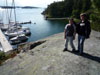 Grinda-Sandhamn. Vi sov ut i vår fina förpik och passade på att testa duschen som fungerade utmärkt. Vi tog en promenad i naturreservatet på Grinda, det är Skärgårdsstiftelsen som sköter området. Det finns vandrarhem, fin restaurang och affär m.m. på ön. Catharina hittade vit-, blå- och gulsippor, fina! Vi gjorde oss iordning för färden till Sandhamn, tog bort strumpan och kastade loss. Vi hissade storen men då drev båten bara i sidled, motorn startade inte, utan snabbt ut med förseglet så båten lydde rodret. Vi kryssade ut till sandhamn det gick som tusan 8.1 knop, hon är väldigt stadig. Vi hade ett litet debackel när vi skulle landa. Vi höll på att mosa en liten motorbåt, vi är inte vana vid bogpropellern ännu. Annars gick det bra, Magnus är duktig och lär sig snabbt. Vi tog en ankarwhiskey och gick på promenad för att se omgivningarna Sandhamn är fint men dyrt, 480 kr/dygn. Vi gick en lång bryggpromenad för att titta på fina båtar. Där låg en del motormonster 80-fotare osv. med 3 cm:s elkablar för att klara försörjningen av el. Idag blev vi bjudna på tunnbröd med rökt lax, torkad parmaskinka, avocado med löjrom, kall öl till, gott! Huvudrätten bestod av grillad baconinlindad fläskfilé med grönmögelost i, squash och klyftpotatisar till. Gott rött vin. Chokaldmousse, kaffe och whiskey. Vi blev mätta och goda och drog oss tillbaka till vår fina båt och njöt! B