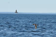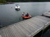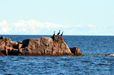 Simphamn-Mellanbalesviken. Vi vände söderut igen, fint väder, men hela tiden skugga bakom seglet. Vi tog en sväng ut till Sydostbrotten för att gå på säljakt men vi såg inga sälar de var någon annanstans, däremot såg vi Tordmular de var riktigt nyfikna. C. var lite bister för att finaste dagen på andra delsemestern spenderades i segelskugga. Morr ! På kvällen la vi till i norra viken på Mellanbalesudden, mot en liten handbyggd stenpir. På den kom jag i land torrskodd. Vi var ganska trötta vi hade seglat en lång sträcka, för vi hade hoppats på Grisslan men där var det fullt. Vi åt sill och hade nubbe till och sen var det sängdax. Tordmular i närbild, nyfikna sådana.
