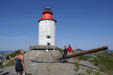 Trosa-Landsort. Frasse var lite överförfriskad, så han låg för ankar. Vi kastade loss och plöjde oss ur leran, vi vet i alla fall att vi kan gå in där trots att vi sticker 2.30. Vi gick för motor till Öja, det var helt vindstilla och en hel del alger i vattnet, äckligt. När vi kom iland tog vi en långpromenad till fyren och byn Landsort. Det var jättefint där. Vi åt lunch, en baugette och så drack vi det lokala Nynäshamnsölet, som var mycket gott. Det var satans hett och vi blev ordentligt grillade på köpet. När vi kom tillbaka tvättade vi några maskiner tvätt och dekorerade hela båten med den. Vi åt sill och potatis och drack en nubbe till. Vi träffade ett trevligt par på en Oceanis 40 DS som vi var in i, den var fin. Bilder från Landsorts fyr men även algblommning.