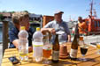 Landsort-Nynäshamn-Rånöhamn. Vi tog ner tvätten och Magnus satte upp ett tandborsteglas, det blev väldigt fint. Vi dunkade motor in till Nynäshamn för att bunkra och för att köpa skaldjur i fiskaffären nere i hamnen. Vi ville även ha med oss det lokalproducerade ölet som var så gott. Magnus "råkade" hitta en kamera, en nikon och den där nätverkskabeln som fattades. Vi passade på att köpa diesel och att tanka vatten och så hade de glass från lejonet och björnen och det kan man bara inte missa. Vi kryssade ut till Rånö och passerade Stig och Bibbi, de har inte fått in tricket ännu, men de blir bättre ! Vi kom in genom gattet i 8 knop och hittade oss en plats, ankaret krånglade och vi fick ta om flera gånger. Till sist gick det bra. Ankarölen var en kulinarisk resa i Nynäshamnsöl, vi hade en liten provning, de är goda allihop, fast jag gillar stouten bäst ! Felix hittade sig en kompis som han badade med, kul ! Vi käkade havskräftor och räkor och drack champagne till, Landson. Vi fyllde dock på med en chablis. En underbar kväll, varmt och skönt. Vi spelade rummy innan vi knöt oss. Segling till Nynäshamn och skaldjursfrossa i Rånöhamn