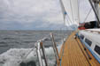 Skatan-Lustholmen. Vi kastade loss och begav oss mot Lustis. Vi kryssade fram, vi la ut ett ben halvvägs till Finland och vi fick bra snurr på grejorna, ytterligare ett ben och sen var vi i mynningen på Ångermanälven och då kom regnet, naturligtvis ! Vi var nära att få på nöten av Bibbi och Stig som seglade bra, men vi drog ifrån på länsen. Tommy och Christine kom till Lustis, det var kul att träffas efter så lång tid. Vi tog en landare tillsammans och sedan kom de och tittade på vår nya båt. De tyckte den var fantastisk. Vi käkade karrékotletter med svampsås och potatis till, gott som vanligt ! Mot Lustholmen !