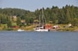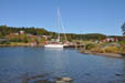 Agö-Skatan. Nästa dag tog Felix ett åksjukepiller och sov länge. Vi körde motor upp till Kuggören sen seglade vi till Skatan, vilket var jättefint, vilken överraskning ! Trång passage men det gick fint, de har nyss muddrat där. Där fanns rökeri, restaurang, kaffe och fiskaffär. Vi tog oss en promenad för att titta på omgivningarna, det var pittoreskt. Felix hittade blåbär som han plockade. Vi käkade grillad kyckling och potatissalld till, mums ! Bilder från Agö och Skatan.